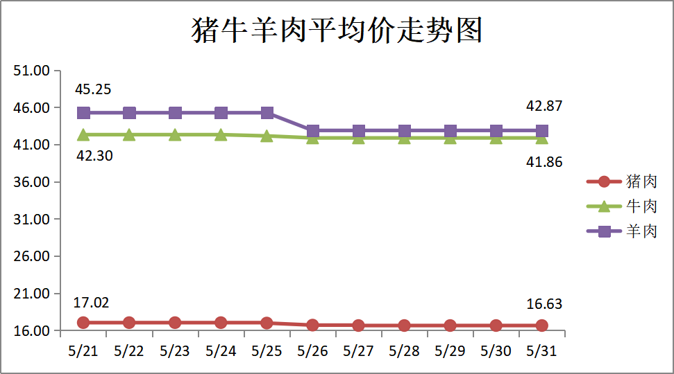 我区监测的13种副食品中猪牛羊肉、鸡蛋、豆腐、牛奶等8种代表品5月下旬商超、农贸市场平均价格及变化情况如下: