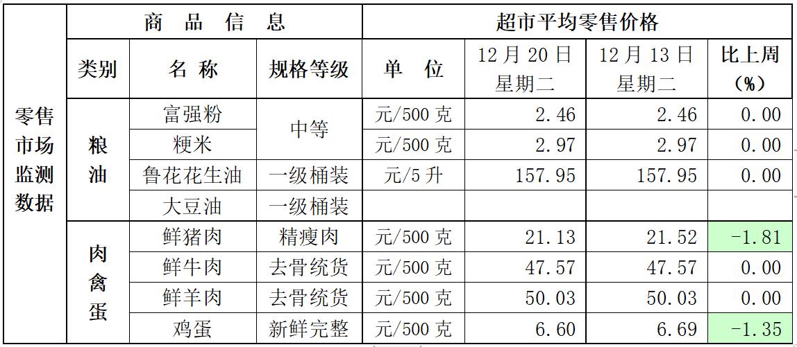 12月20日全市主要市场生活必需品价格情况如下: