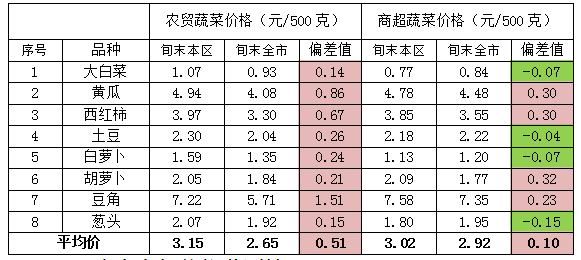 8种“当家菜”全区平均价格与全市平均价格对比,本旬我区农贸市场平均价3.15元/500克,较全市平均价高0.51元;商超平均价3.02元/500克,较全市平均价高0.10元。