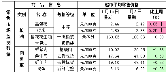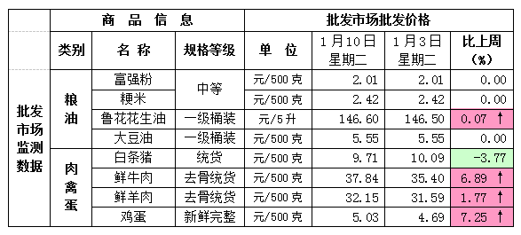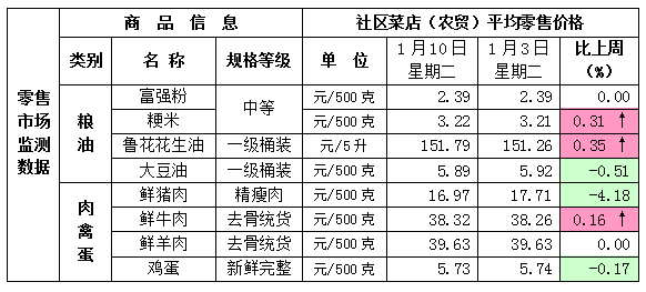 1月10日全市主要市场生活必需品价格情况如下: