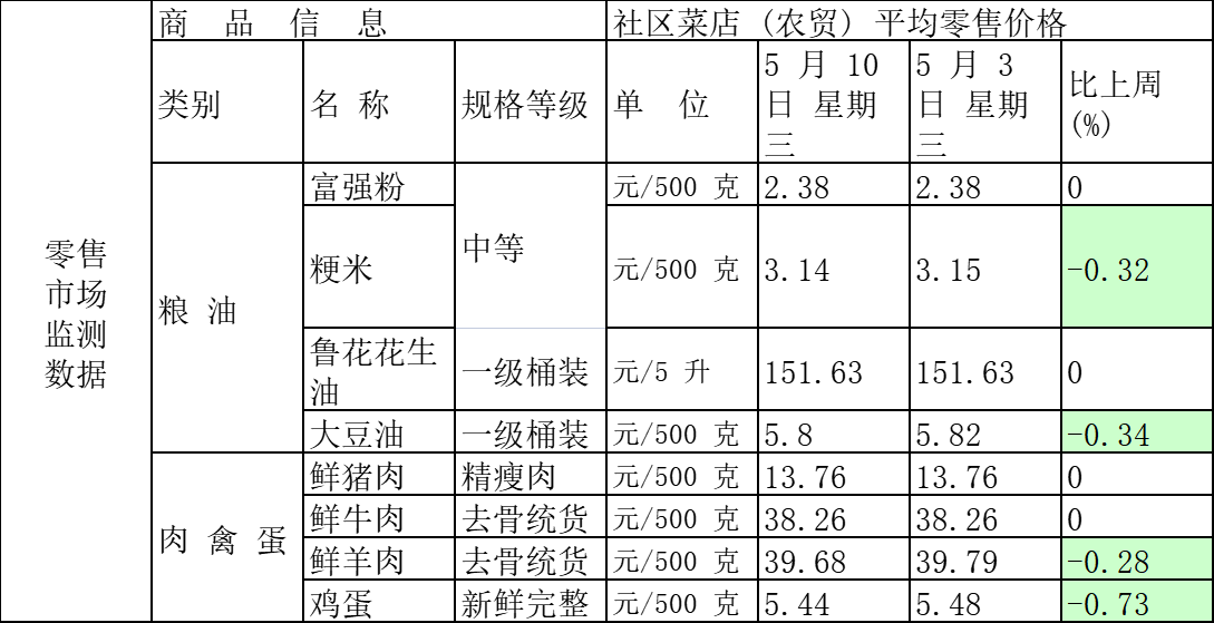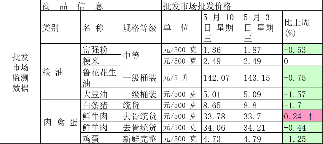 5 月 10 日全市主要市场生活必需品价格情况如下: