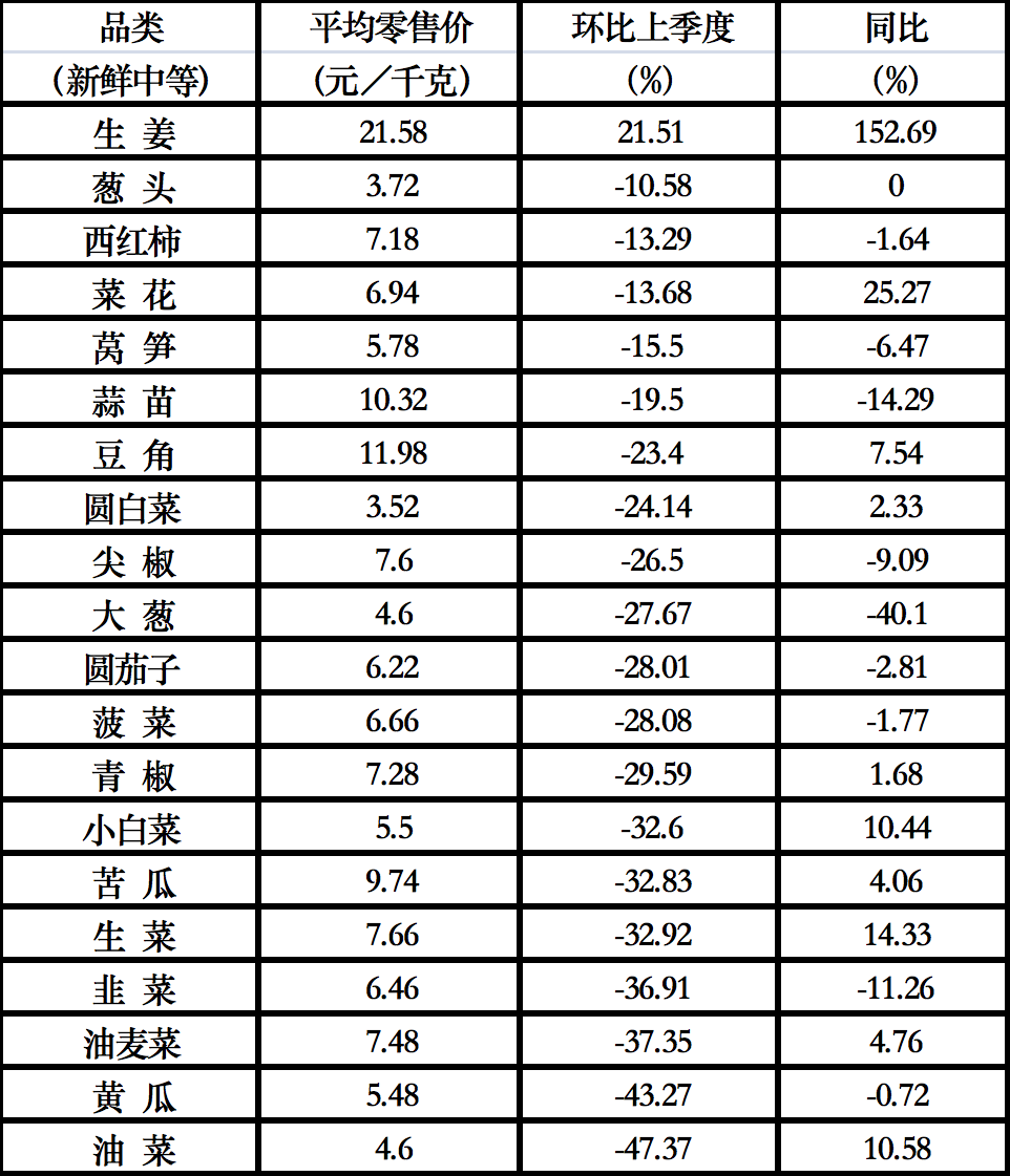 二季度开始进入夏季,随着各地露天蔬菜大量上市,地产蔬菜市场占比不断提高,蔬菜市场供应趋宽,在没有出现影响蔬菜生产、运输的极端降雨天气情况下,预计后期蔬菜价格还将保持一段时间的震荡运行。