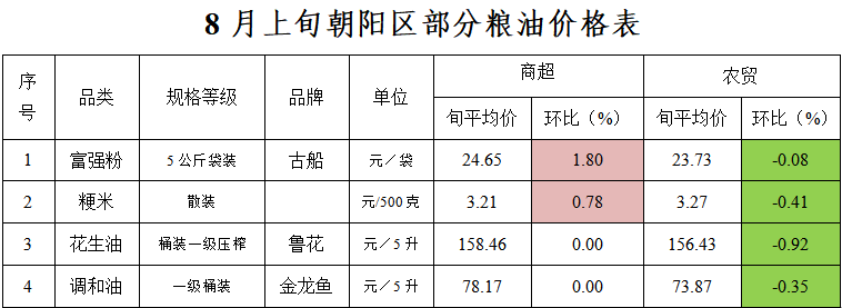 8月上旬朝阳区生活必需品市场价格监测情况分析