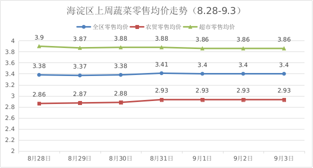 上周,海淀区蔬菜零售均价环微幅回落。周零售均价为3.39元/500克,环比微幅下降0.46%。其中农贸市场周均价为2.9元/500克,环比微幅上涨0.35%;超市周均价为3.87元/500克,环比下降1.06%。监测的31种蔬菜单品中15涨15降1平。价格上涨的15种蔬菜中,黄瓜、菠菜、圆白菜、莴笋涨幅在10%-20%之间;芹菜、大白菜、菜花涨幅约为6%;生菜、冬瓜、豆角等其余8种蔬菜涨幅均低于4%。价格下降的15种蔬菜中,小白菜、油麦菜降幅明显,分别为19.74%和11.61%,油菜、大蒜等其余13种蔬菜降幅均低于7%。蒜苗零售均价环比持平。
