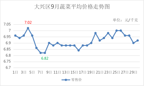 九月份,大兴区主要消费品市场价格总体水平小幅波动,市场各类生活必需品供应充足;蔬菜、猪肉、鸡蛋价格窄幅上涨,粮油价格波动不大,具体情况如下: