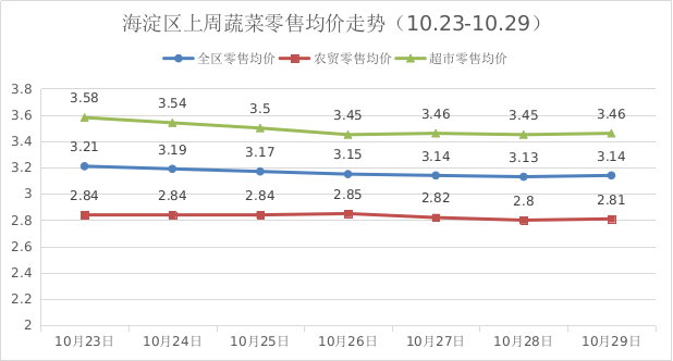 海淀区上周蔬菜零售价格持续小幅下降(10月23日-10月29日)