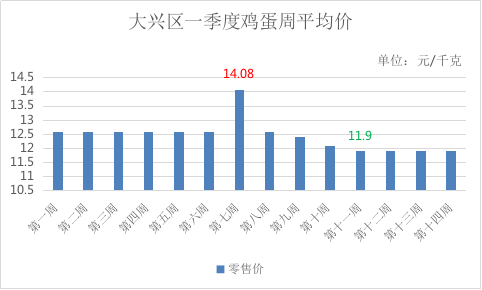 鸡蛋一季度平均零售价格为12.5元/千克,环比下降2.34%,同比上涨1.79%。