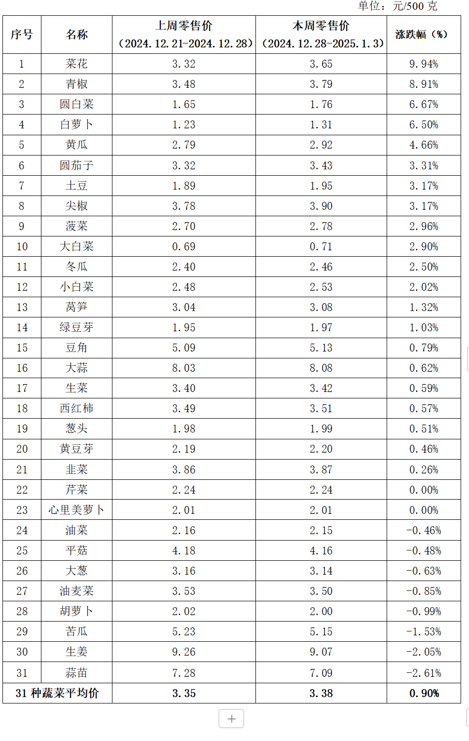 东城区31种蔬菜平均价格情况