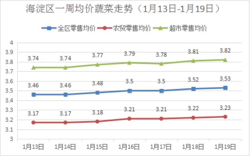 海淀区上周蔬菜零售价格稳中微涨(1月13日-1月19日)