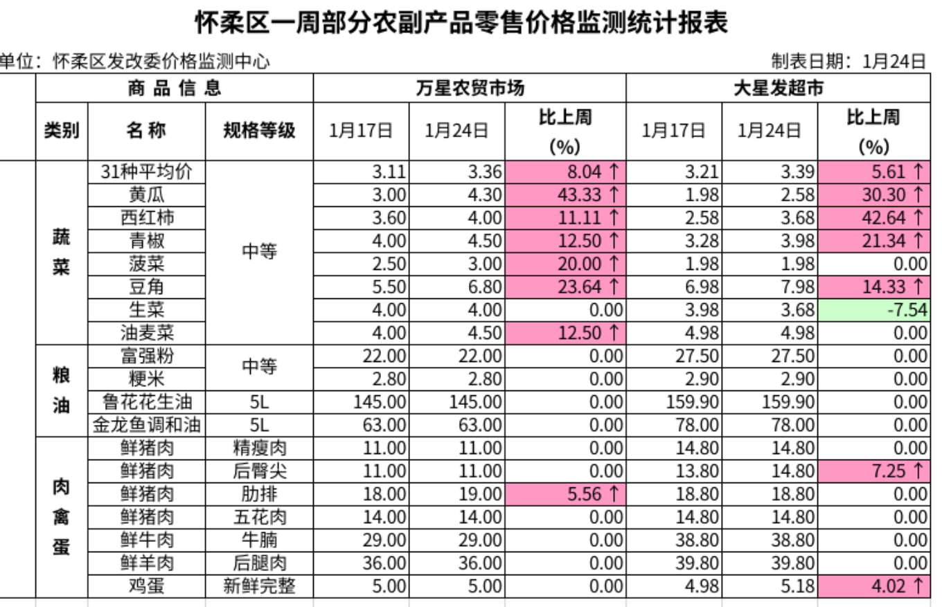 怀柔区发改委本周市场监测情况(1.17-1.24)(2025.1.24)