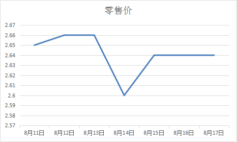 品类 | 零售价(8.11-8.17) | 零售价 (8.4-8.10) | 周环比 |