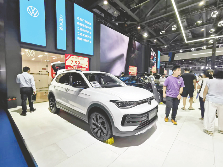 10月1日,2025南昌国际车展,消费者在上汽大众展台观看和选购车型。 每经记者 李星 摄
