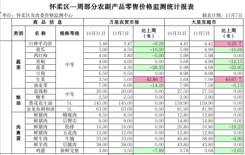 怀柔区发改委本周市场监测情况(10.31-11.7)