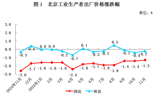 2025年11月份北京工业生产者出厂价格同比下降1.3%