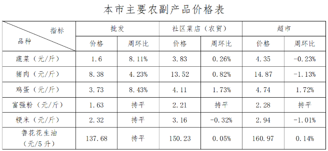 受全国大范围降温天气影响,本周(1月17日-23日)生活必需品批发价格以涨为主。从全国价格水平看,北京市蔬菜、猪肉和鸡蛋零售均价在36个大中城市中,从高到低排名分别为第34、25和21位,均低于全国平均价格水平。1.天气因素致使蔬菜批发价格上涨明显。受全国大范围降温和雨雪天气影响,蔬菜生长速度放缓,采收和运输等成本上升,批发价格上涨明显。25种蔬菜批发价格周环比18涨6平1降(涨幅前三的为:圆白菜36.22%、莴笋23.85%、大白菜23.76%)。蔬菜批发、社区菜店、连锁超市价格分别为每斤1.6元、3.83元、4.35元,周环比涨幅分别为8.11%、0.26%、-0.23%。2.猪肉批发价格连续六周恢复性上涨。本周猪粮比价为5.86:1,周环比下降0.34%。白条猪批发、精瘦肉农贸及超市价格分别为每斤8.38元、13.52元、14.87元,周环比涨幅分别为4.23%、0.82%、-1.13%。3.鸡蛋批发价格涨幅继续扩大,零售价格小幅跟涨。鸡蛋批发、农贸、超市价格分别为每斤3.73元、4.11元、4.74元,周环比涨幅分别为8.43%、1.73%、1.72%。4.粮油供应充足,价格基本稳定。
