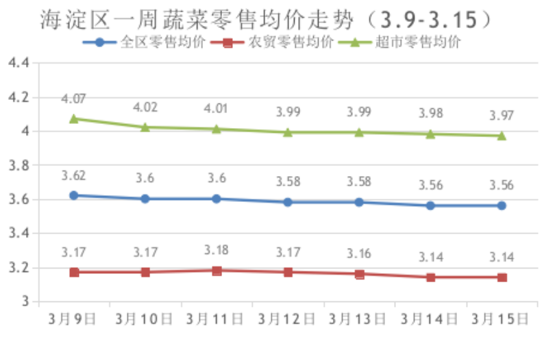 海淀区上周蔬菜零售价持续下降(3月9日-3月15日)